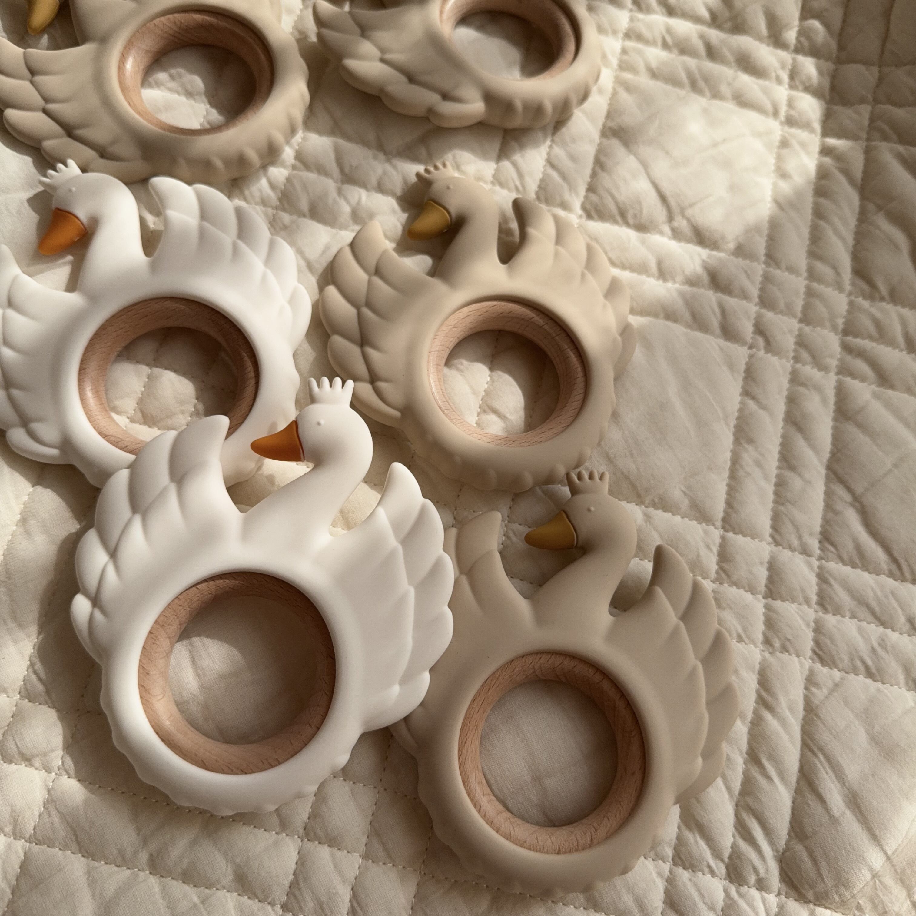 スワン型ラトル 歯固め 2色 無料ラッピング