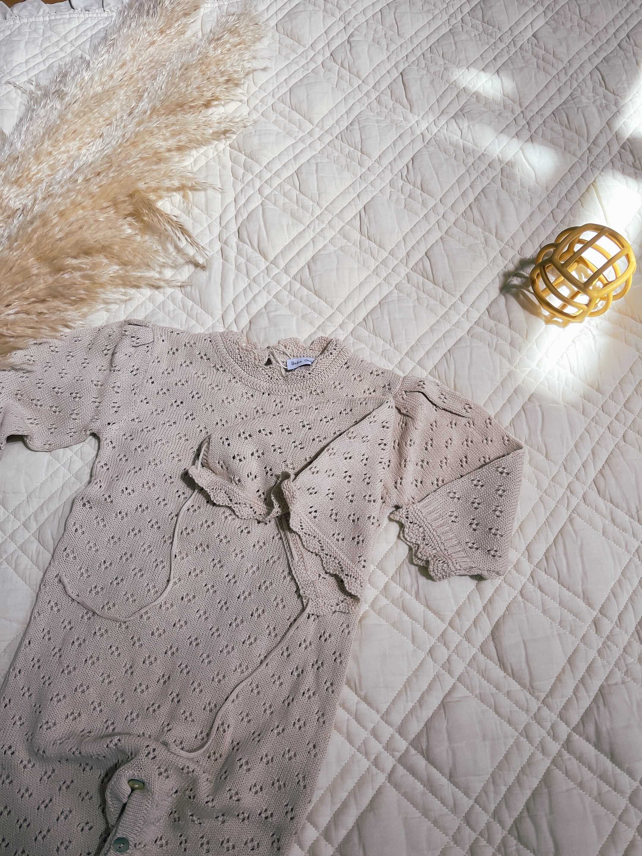 ベビー 透かし編みニットボディスーツ ニット帽ネット付き