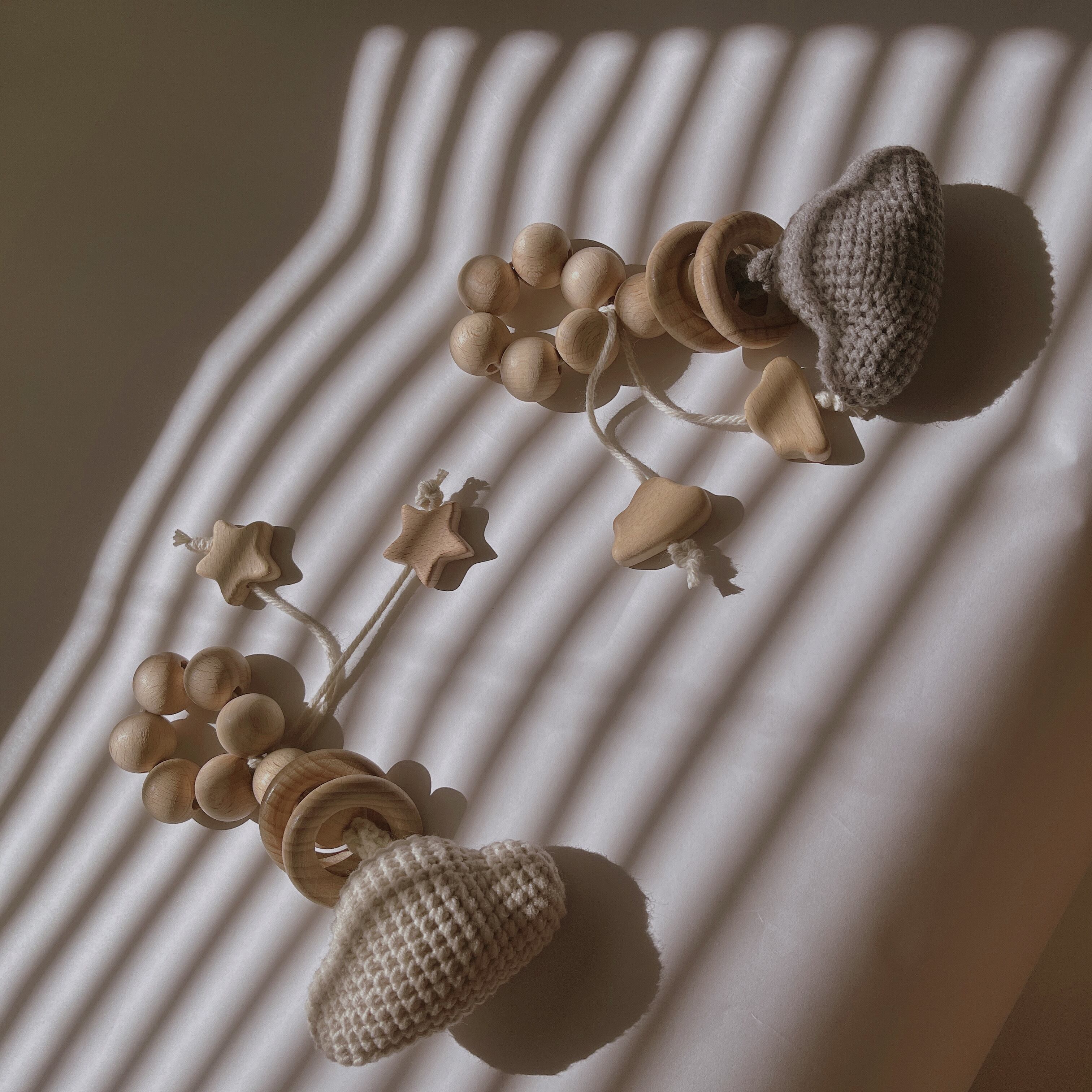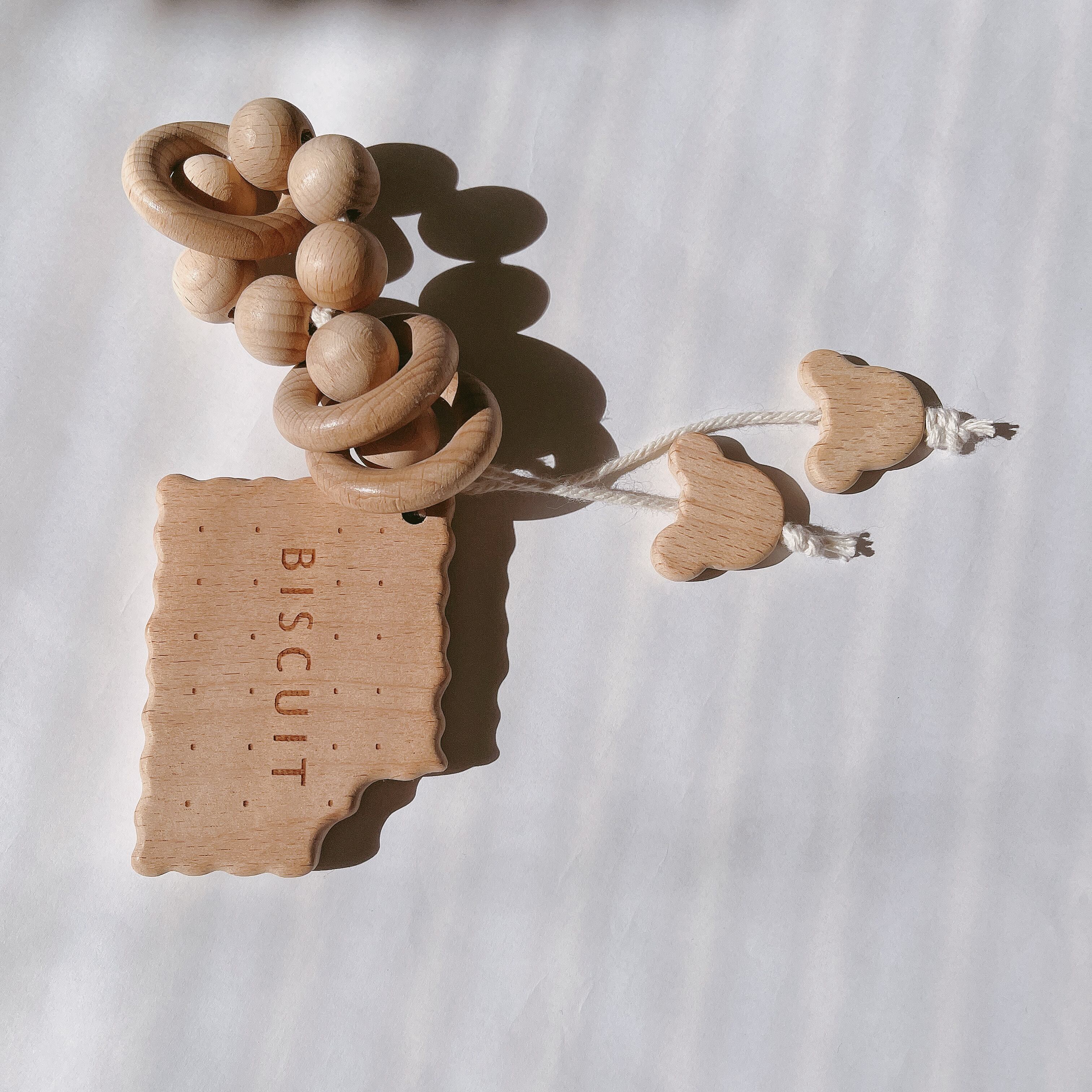 赤ちゃんが舐めても安心なウッドビーズで制作し、