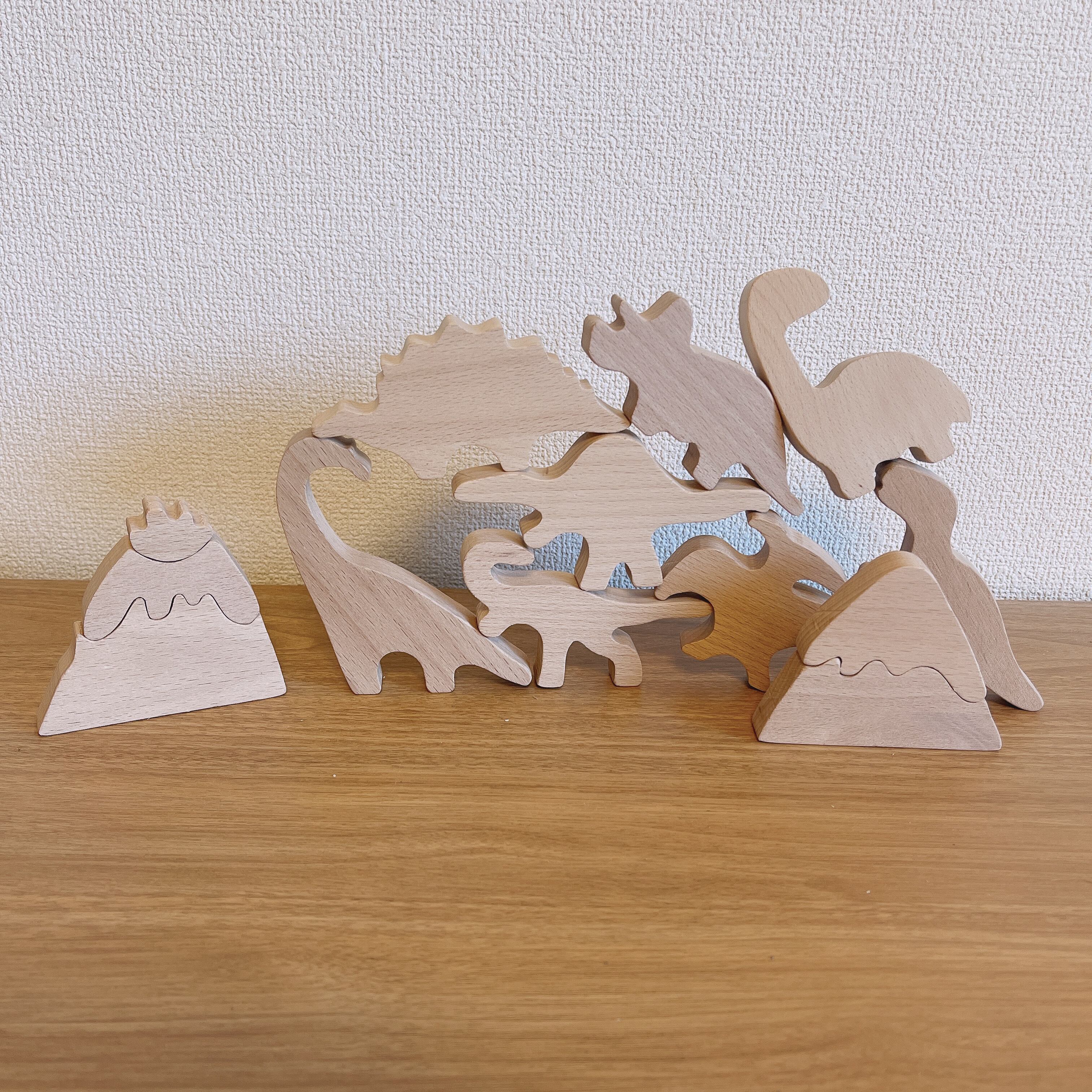恐竜積み木 知育玩具 おもちゃ 木のおもちゃ シンプル ナチュラル 収納袋付