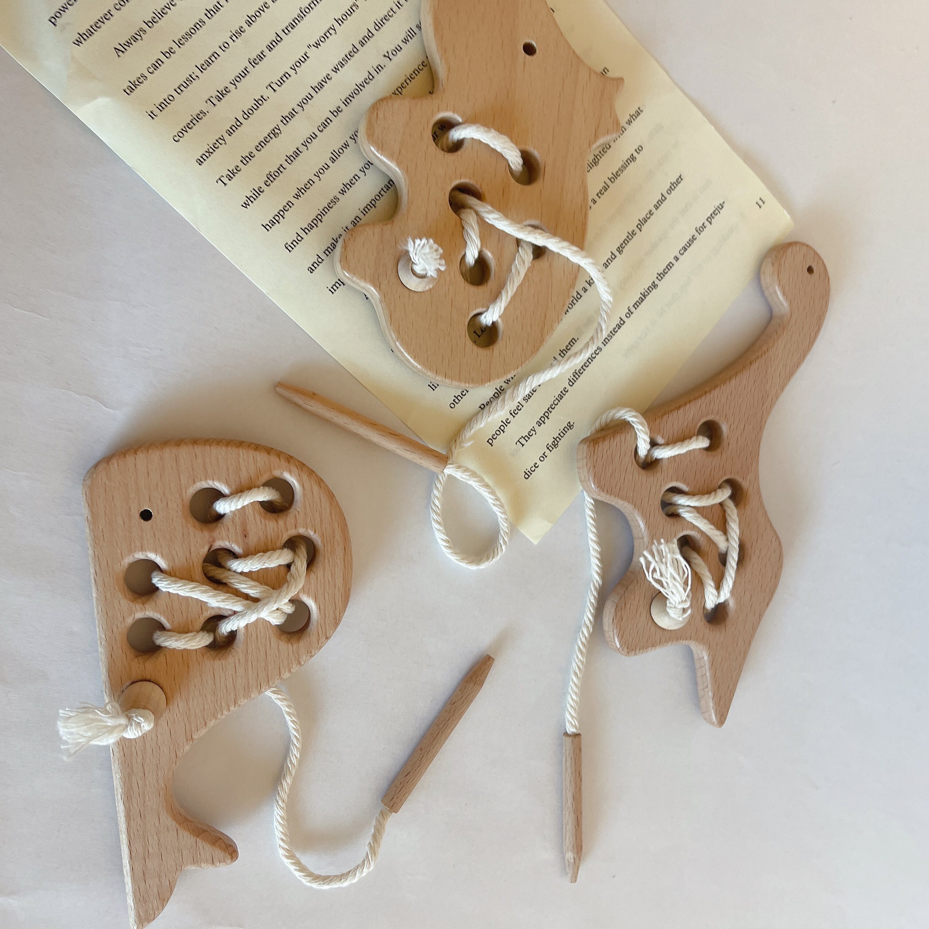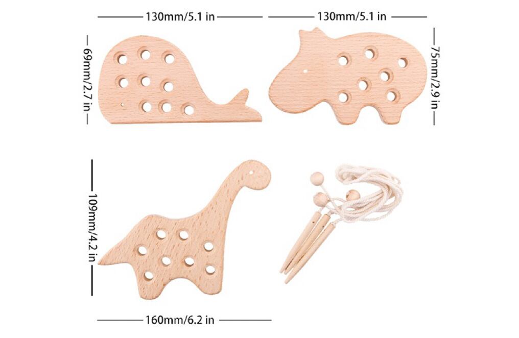 セール品 木製紐通し 木のおもちゃ 恐竜、鯨、カバ、③種セット