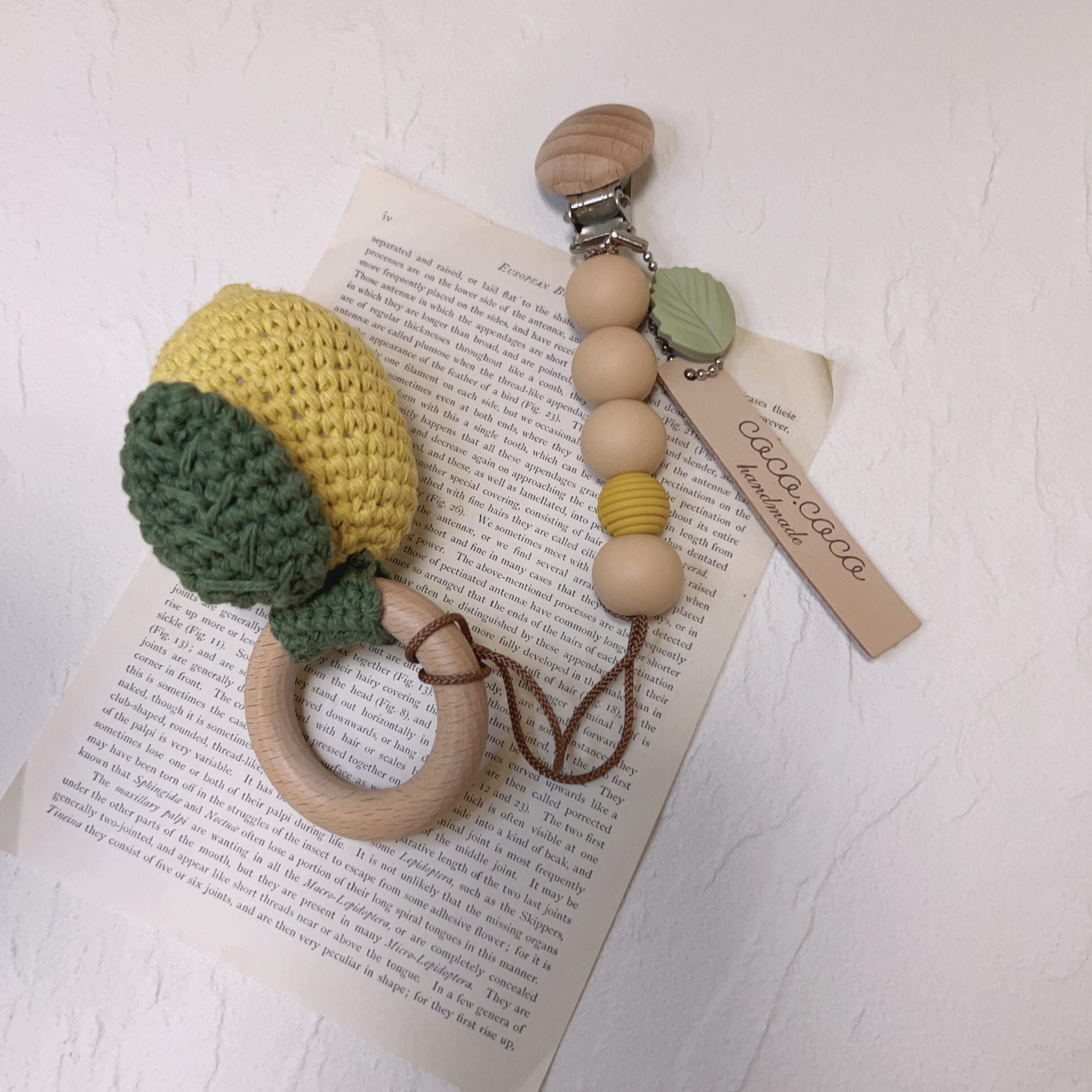 レモンベビーラトル&おしゃぶりホルダーセット 無料ラッピング ギフトおすすめ