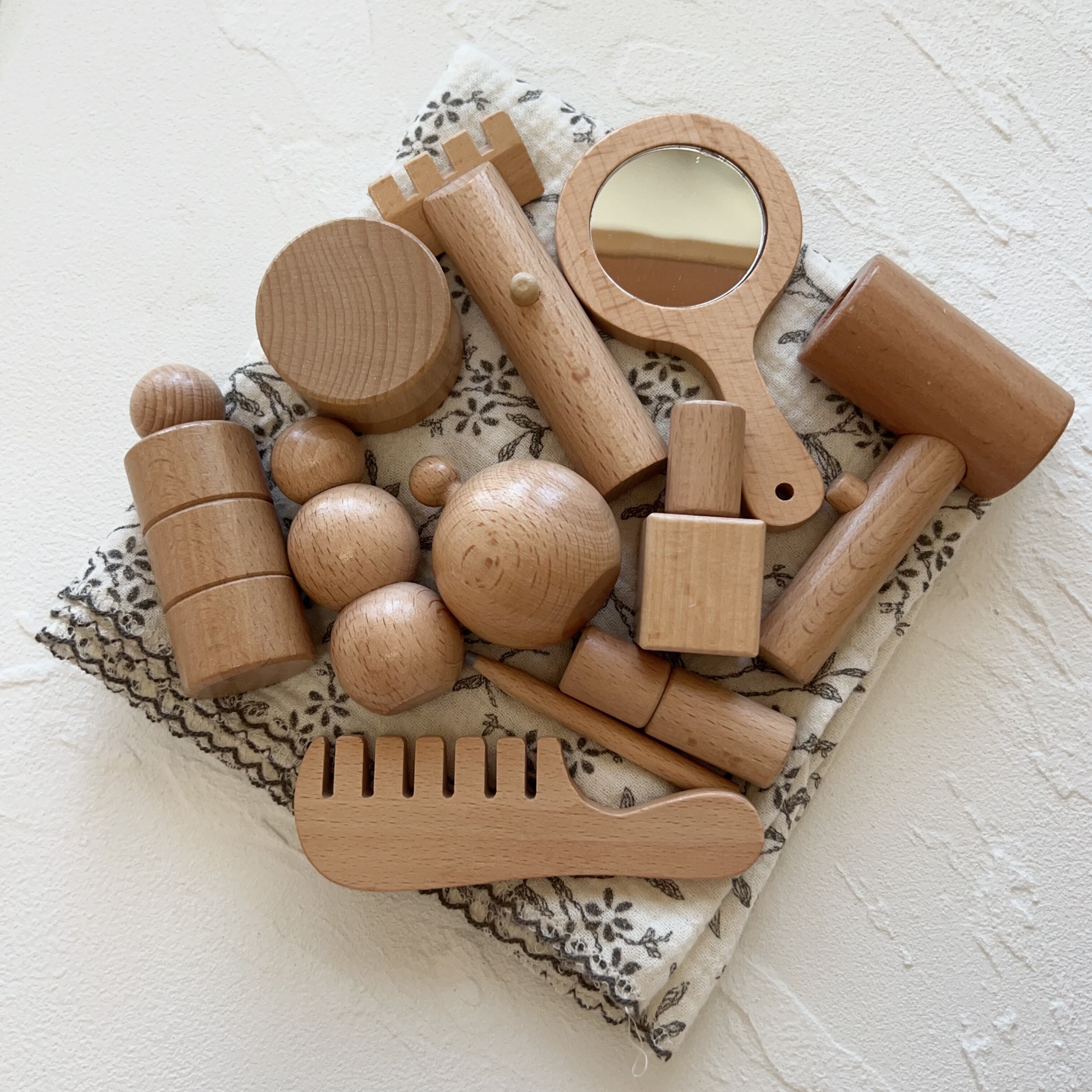 木製 おままごと12点お化粧セット 収納袋付き、ギフト可