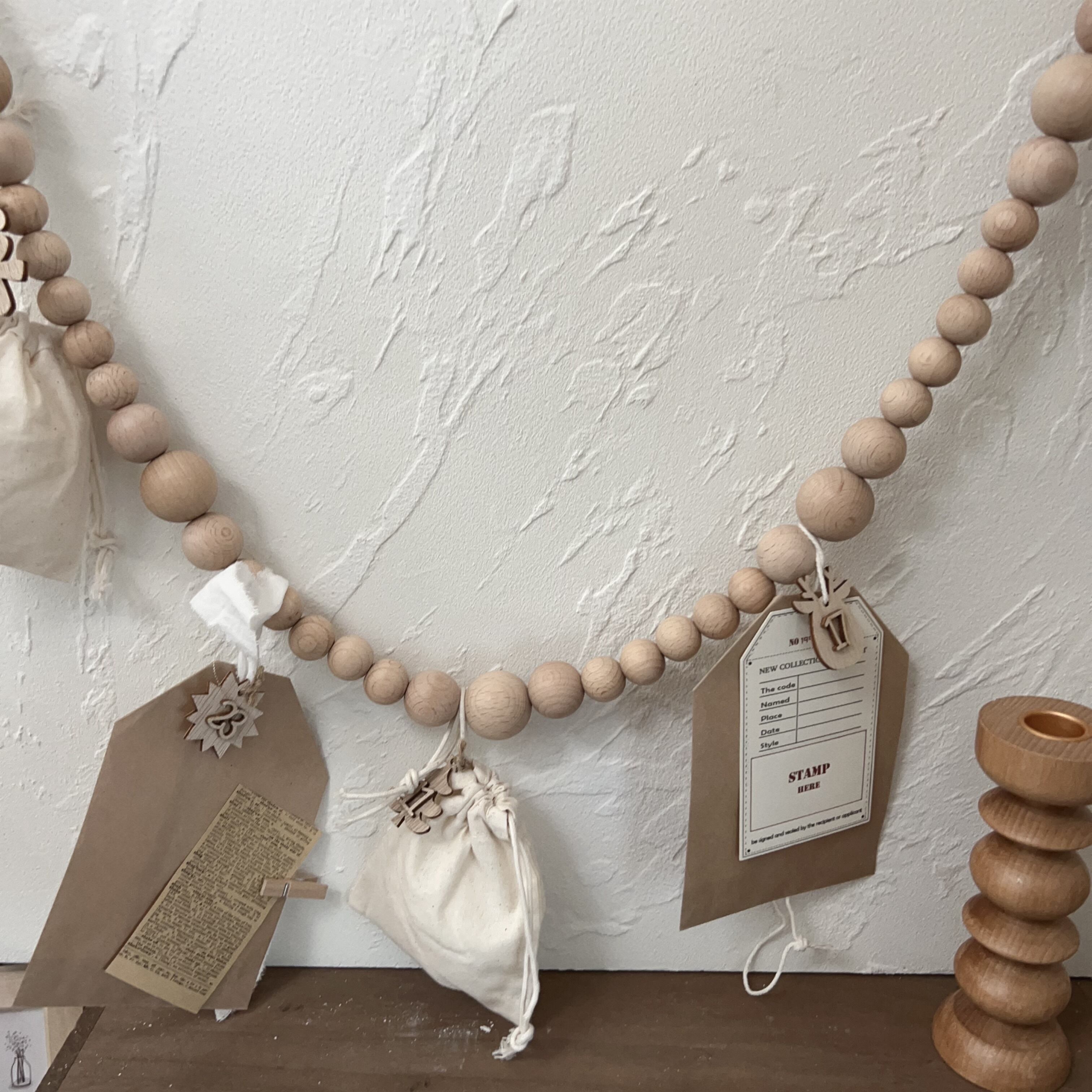 10mm、20mm、30mmパーツでナチュラルな雰囲気のウッドガーランド制作しました。