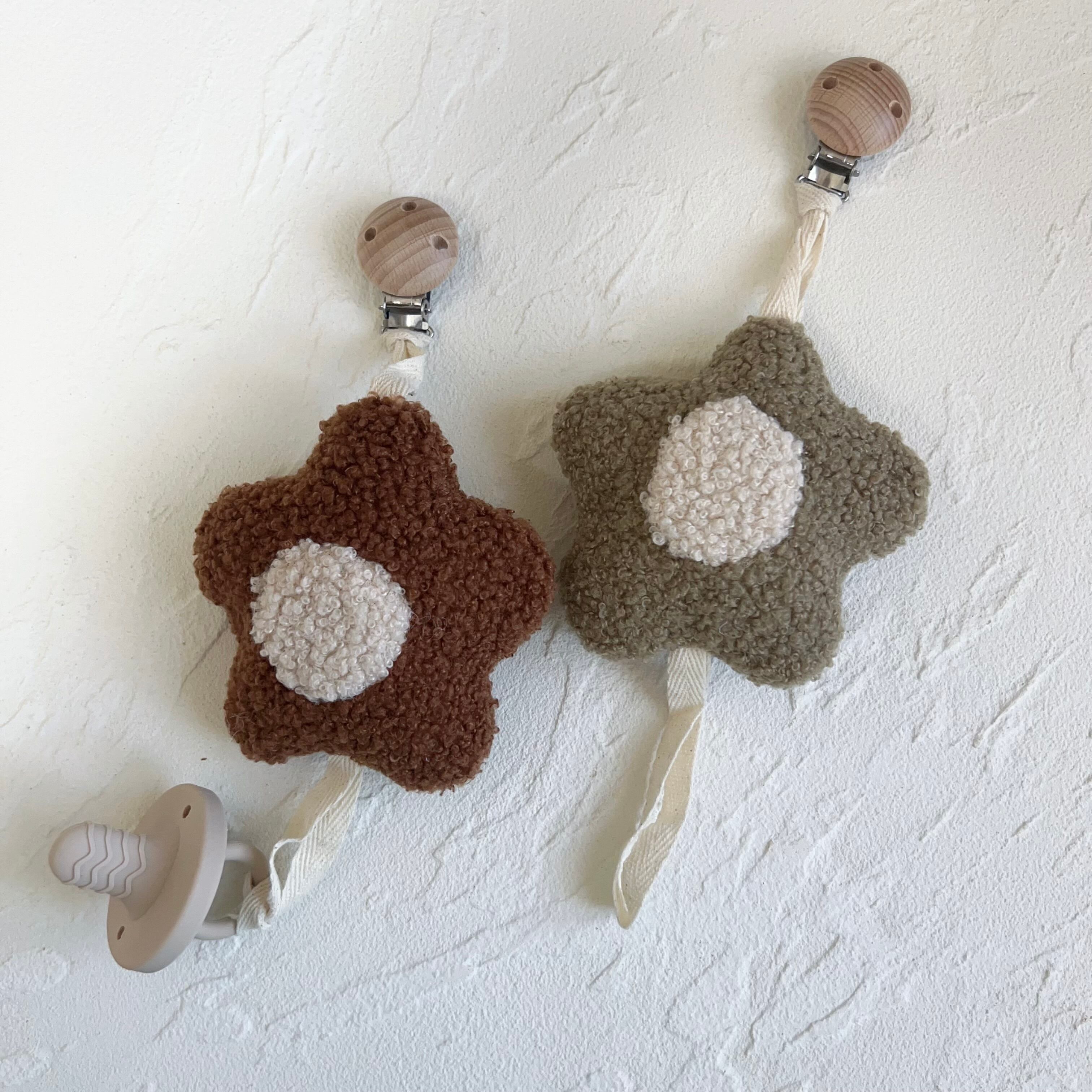 モコモコお花 鈴入れ おしゃぶりホルダー