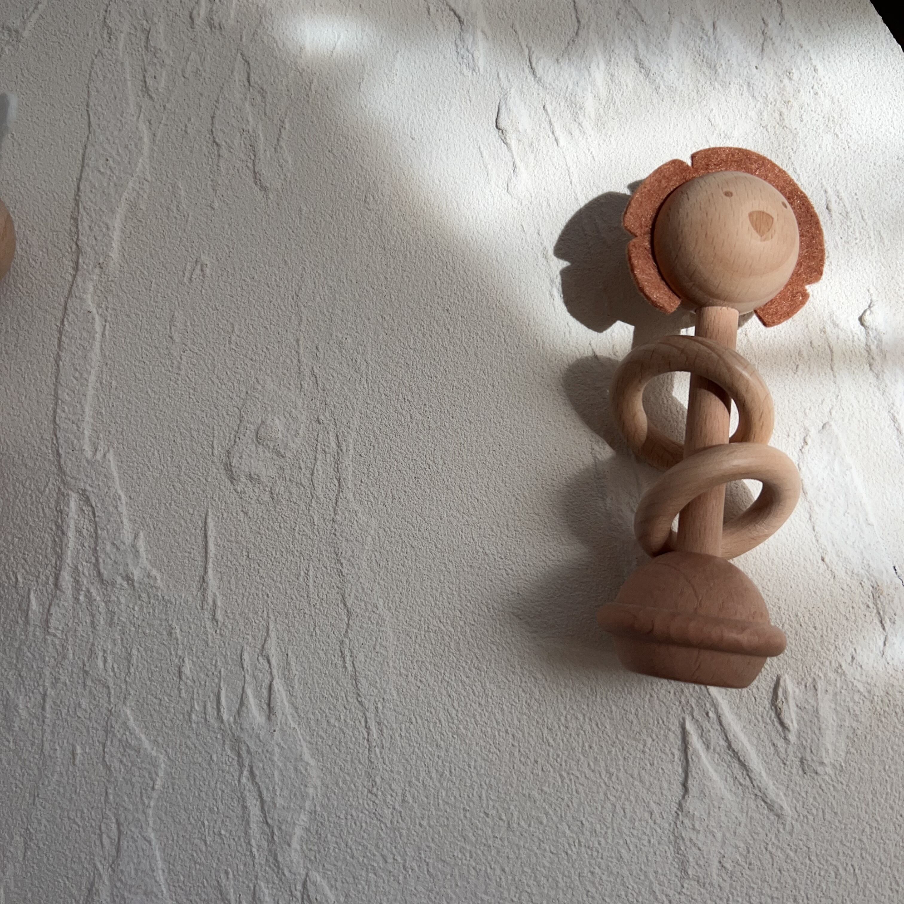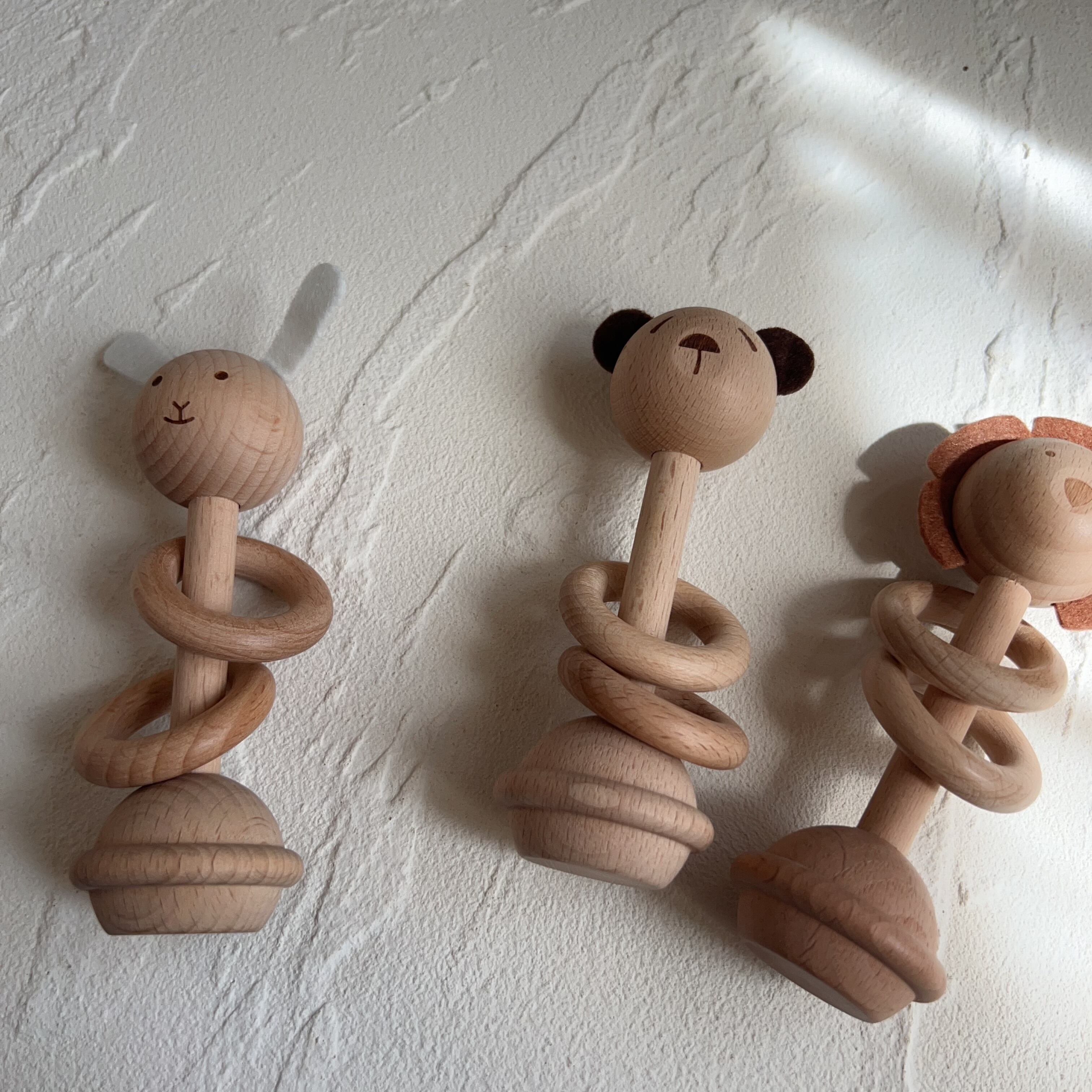 ベビー 木目綺麗 動物3種ガラガラ 歯固めブレスレット