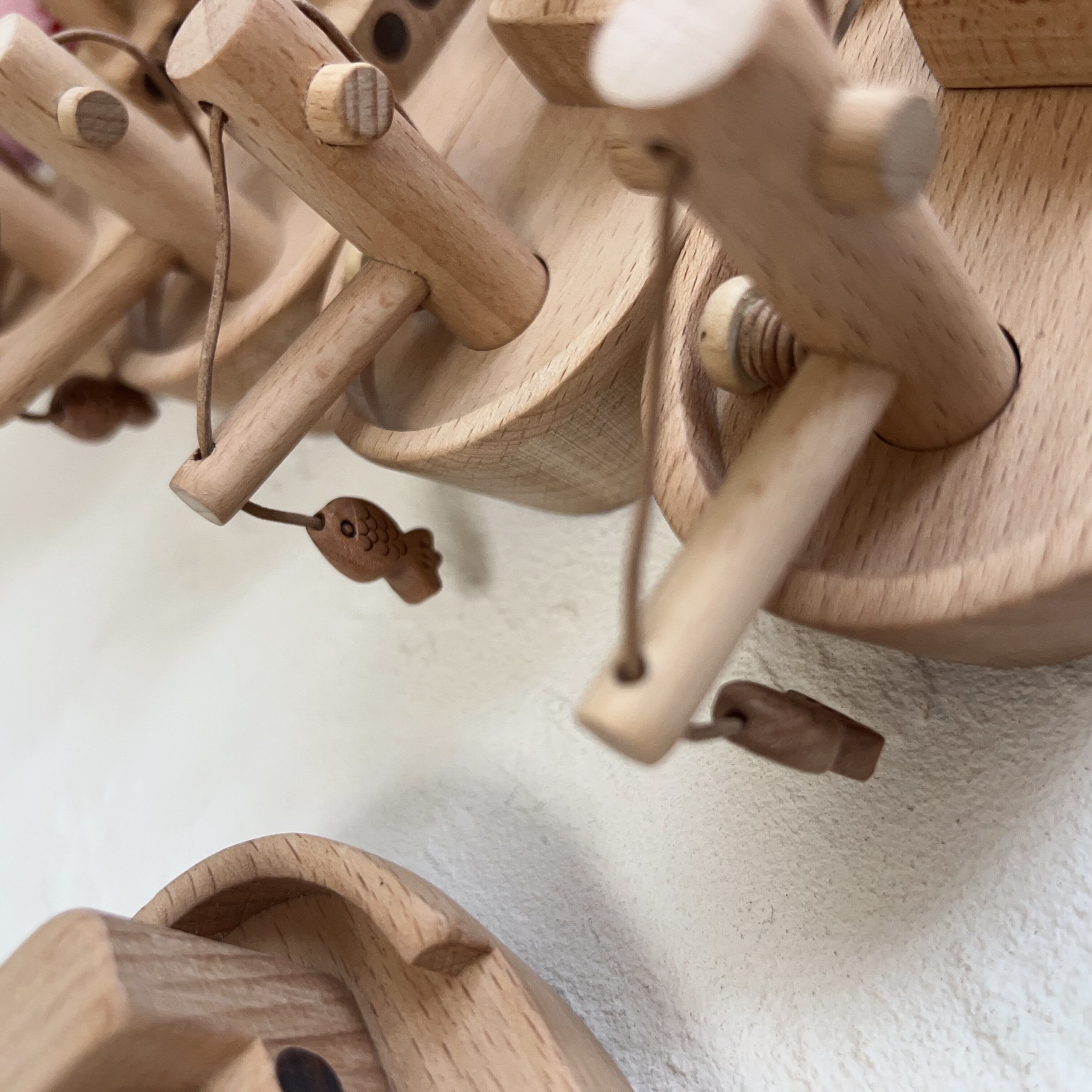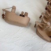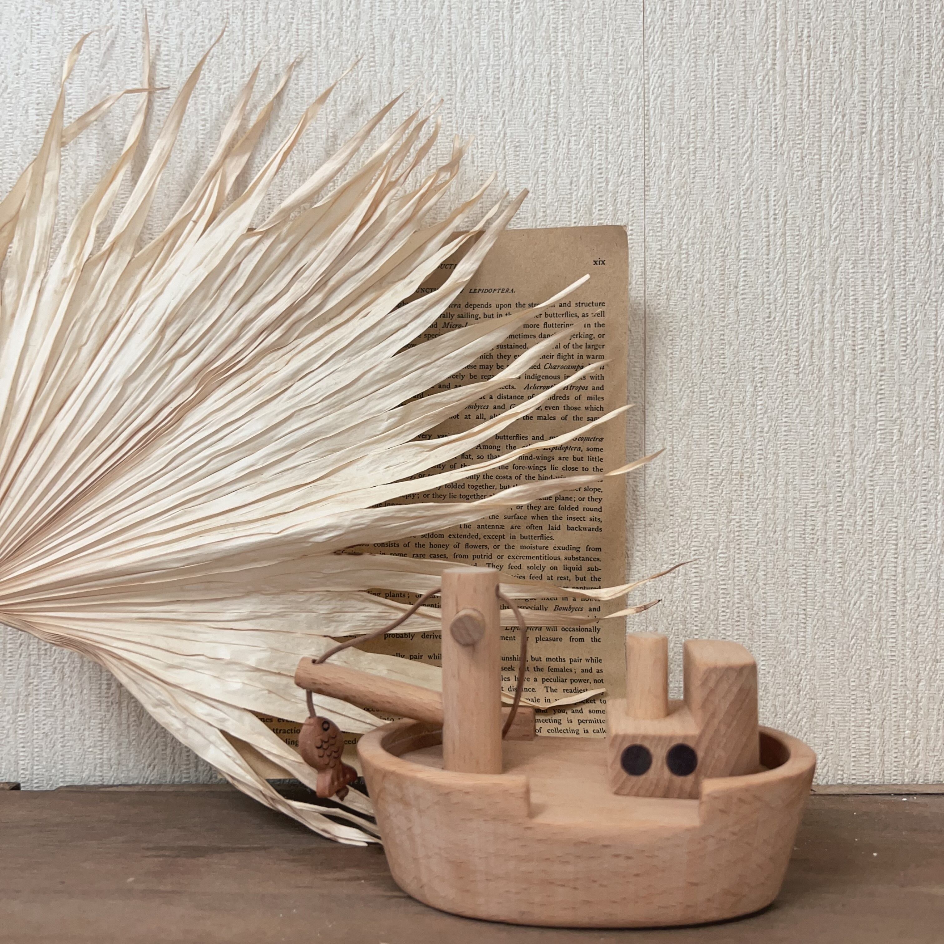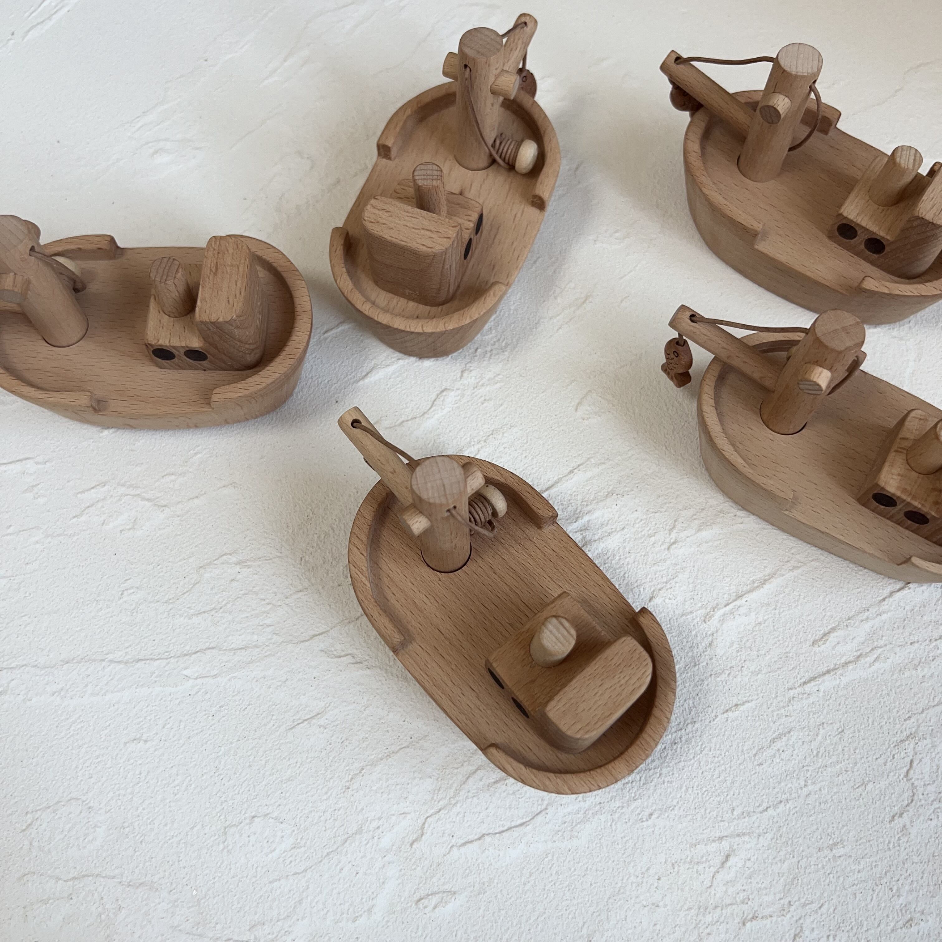 この木製の船は、ナチュラルな素材感が魅力です。子供たちの感性を育むためにデザインされており、安心して遊ばせることができます。